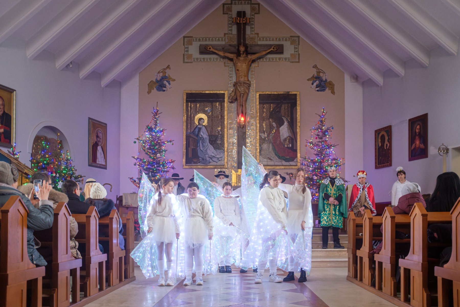 W niedzielę 11 stycznia w kościele Miłosierdzia Bożego w Grójcu odbył się jasełkowo-noworoczny występ artystyczny naszych uczniów. Młodzi artyści zaprezentowali program nawiązujący do tajemnicy Bożego Narodzenia oraz przesłania Nowego Roku, wzbogacony o kolędy oraz układ taneczny ze świecącymi skrzydłami oraz taniec z lampionami, które stworzyły wyjątkową, nastrojową atmosferę. Występ spotkał się z bardzo ciepłym przyjęciem wiernych i został nagrodzony serdecznymi brawami.